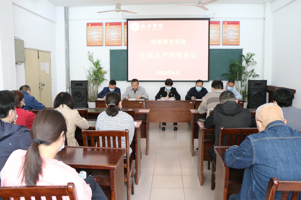 4月7日下午,万象城官网在立本楼二楼会议室召开2022年度全面从严治党工作会议,全体教职工参会。会议由院长郑祚双主持。