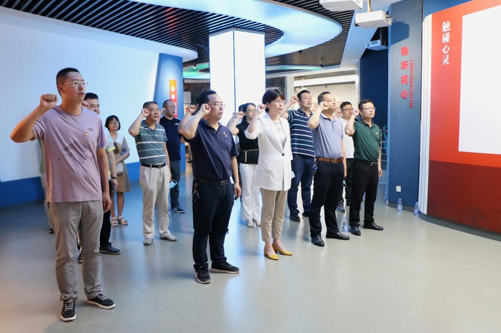 最后,全体党员在党旗下庄严宣誓,重温入党誓词。