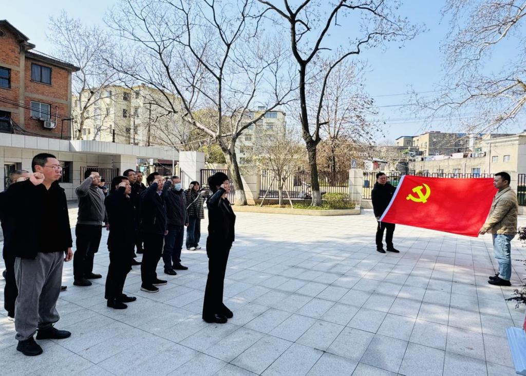 在叶挺指挥部旧址前,全体党员面对鲜红的党旗,庄严地重温了入党誓词。铿锵有力的誓言回荡在革命旧址上空,激励着每一位党员不忘初心、牢记使命,以更加饱满的热情投身到工作和学习中。