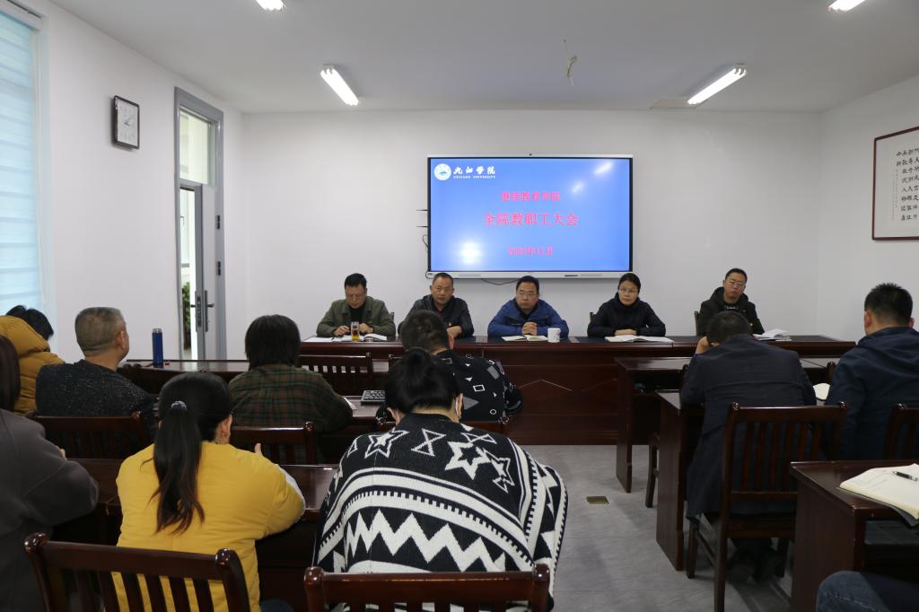 院长郑祚双讲话,他指出,全院教职工要深入学习领会习近平总书记考察江西的重要讲话精神,聚焦“走在前、勇争先、善作为”的目标要求,扎实落实年度工作计划,提前谋划明年工作思路,确保学院各项工作见成效、有突破。郑祚双还对近期学院主要工作进行了布置。