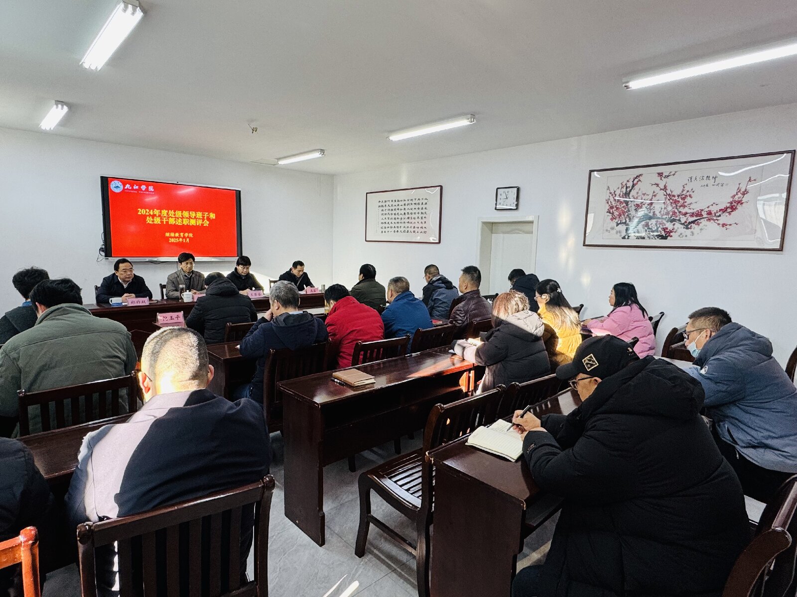 1月10日上午,我院召开处级领导班子和处级干部述职测评会,校党委委员、副校长查振华出席会议并讲话,党政办秘书科科长倪玉平陪同参加。会议由党政办副主任高滨主持。